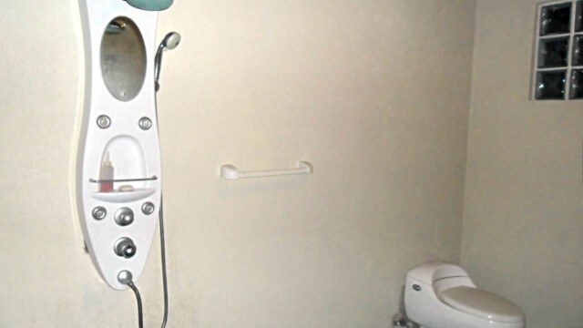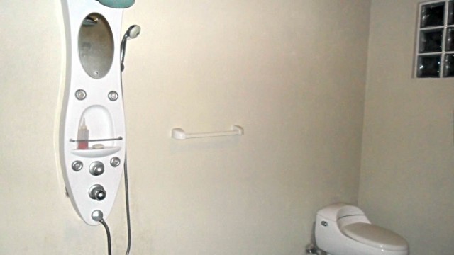 5- The upstairs apartment is set up for adding a kitchen similar to the downstairs, with water, and electric for refrigerator, oven etc. The height of the ceilings center beam is 11ft. high and tapering to 9 ft. along the outside walls including the bathroom and storage closet. The ceilings are of cedar wood and supporting beams are Pilon hardwood. The apartment floor is Grandlio hardwood. The apartment bathroom is 9.5 ft. by 10.5 ft. with window facing the mountain and with tile floor, a double sink basin and glass mirror on wall for two people use.